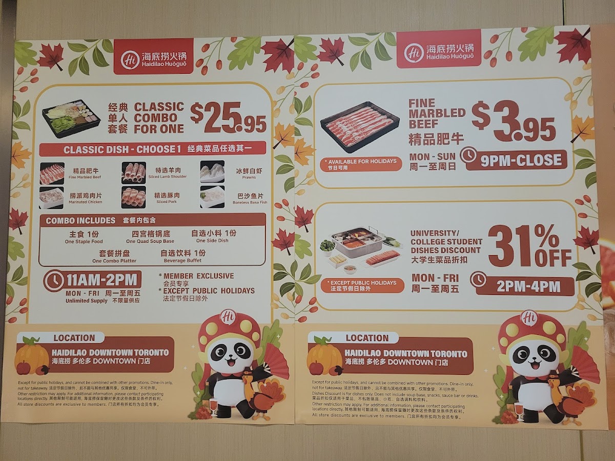 Haidilao Hot Pot Toronto Downtown Menu